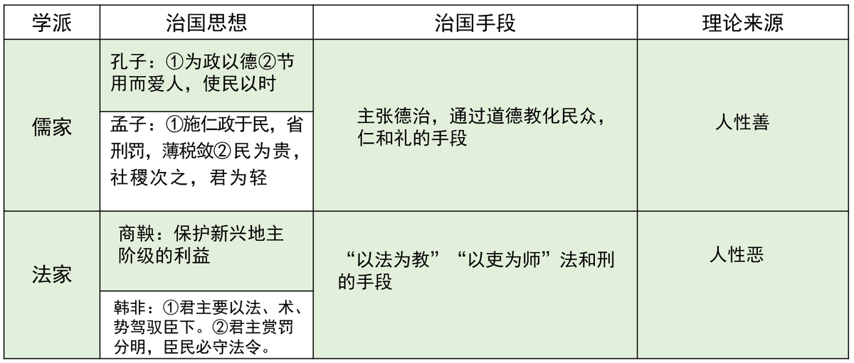 2.通过课堂学习、文本解读,理解儒家和法家的治国思想和治国手段,知道不同时期德治与法治起到的不同作用,培养历史解释的历史核心素养。