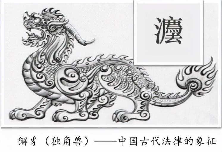 獬豸又称獬廌,中国古代神话传说中的神兽,体形大者如牛,小者如羊,全身长着浓密黝黑的毛,双目明亮有神,额上通常长一角。獬豸拥有很高的智慧,懂人言知人性。它怒目圆睁,能辨是非曲直,能识善恶忠奸,发现奸邪的官员,就用角把他触倒,然后吃下肚子。它能辨曲直,又有神羊之称,它是勇猛、公正的象征,因此,它被称为中国法律的图腾。