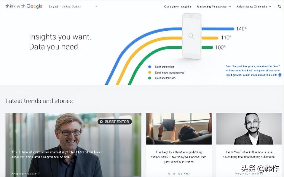 除了监控搜索趋势,谷歌还提供免费的营销资源,包括消费者洞察报告、营销趋势数据、新兴技术、广告活动等。