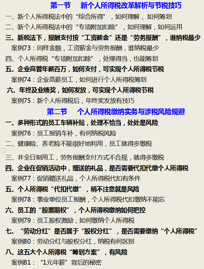 发现一长沙男财务总监,汇总的这100个税务筹划案例,合规可行!税务筹划的意义在这里就不多说了。下面是100个税务筹划的合理节税案例分析。分别是从五个方面来分析税务筹划的。一方面是企业所得税,另外一方面是个人所得税,第三方面是增值税,第四方面就是注册和注销的筹划,最后一个方面就是投融资方面的筹划案例了。对税务筹划有兴趣的,下面看看吧。通过实际业务的案例,带领大家理解企业税务筹划的过程。
