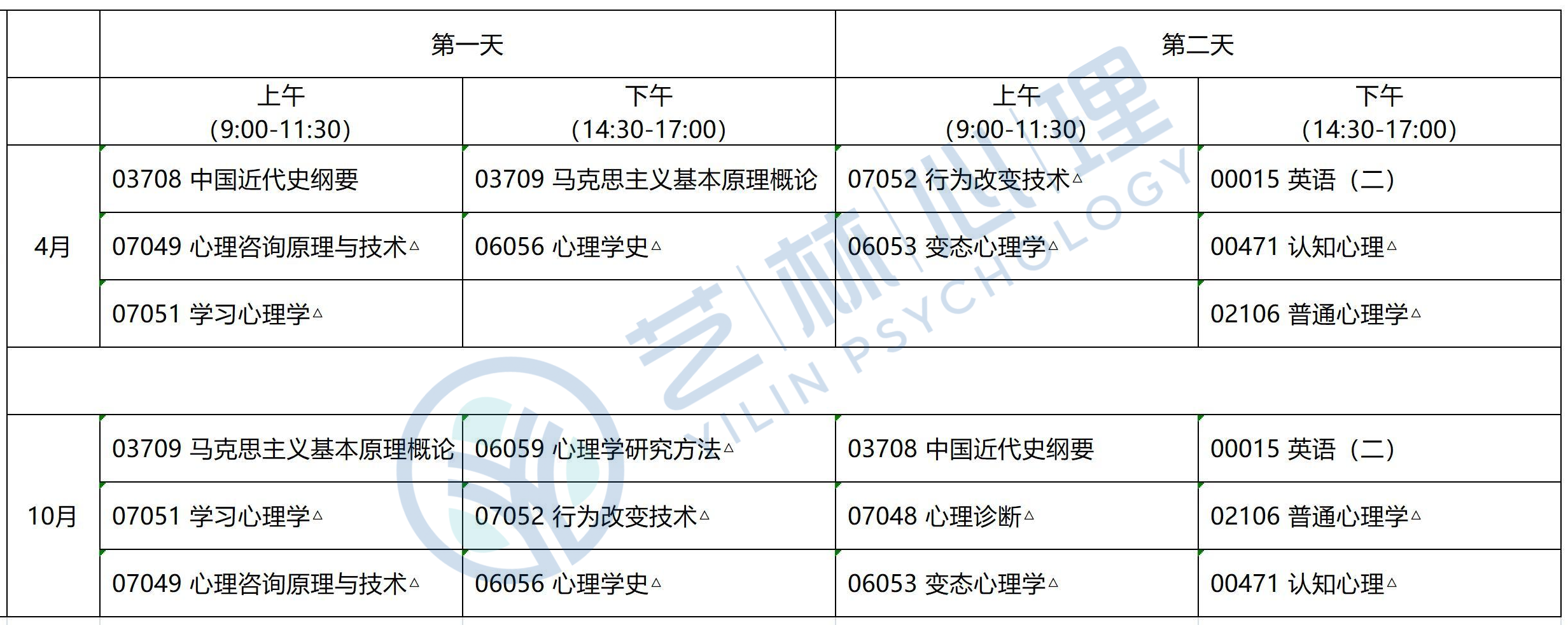 ④06059心理学研究方法、07048心理诊断一年只考1次,其他科目一年开考2次;