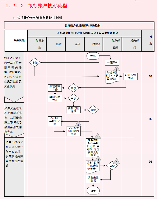 1.银行账户核对流程与风险控制图