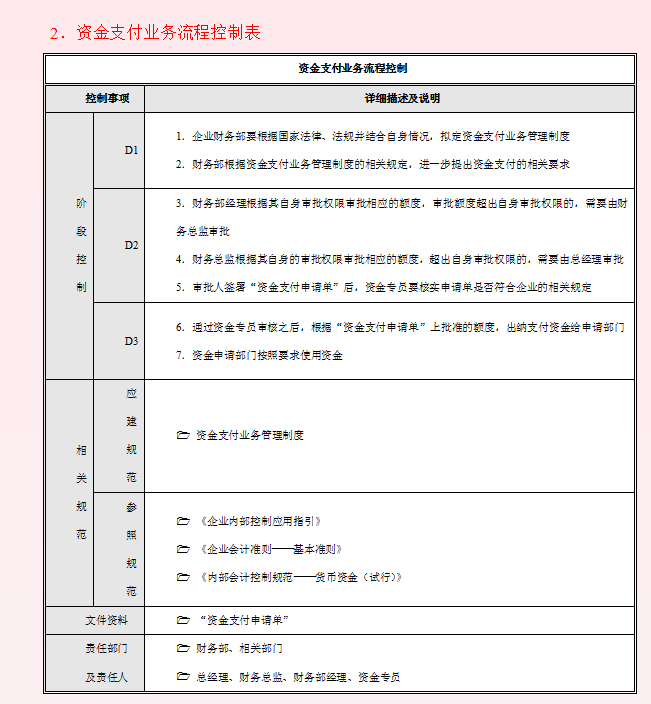 2.资金支付业务流程控制表