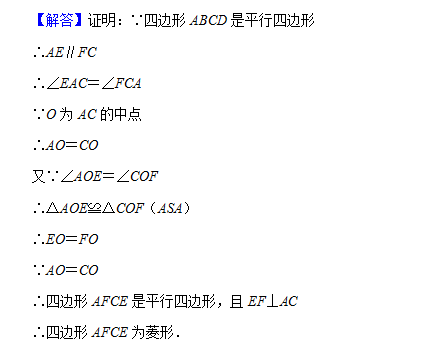 【分析】由平行四边形的性质可得AE∥FC,由角边角可证△AOE≌△COF,可得EO=OF,可证四边形AFCE是平行四边形,又因为对角线互相平分,可证四边形AFCE是菱形.