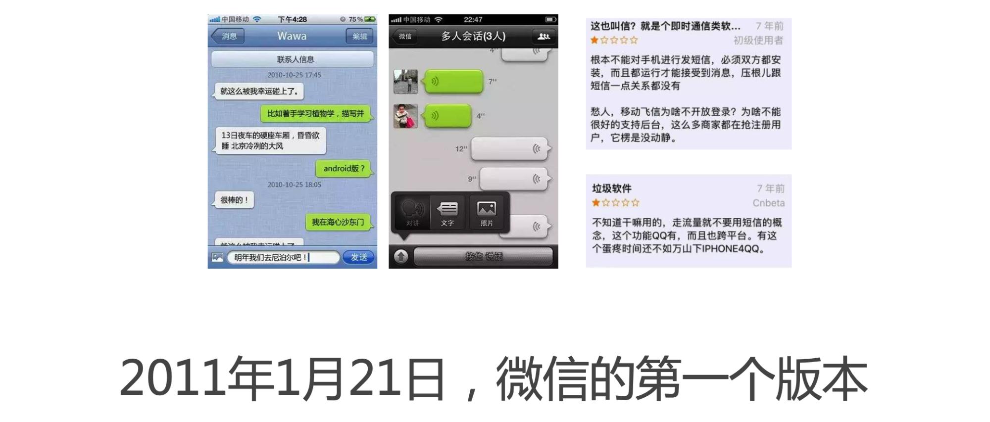 大家可以看下,微信刚上线的时候大家的评论,可见伟大的产品,一开始也不被大家所认同。