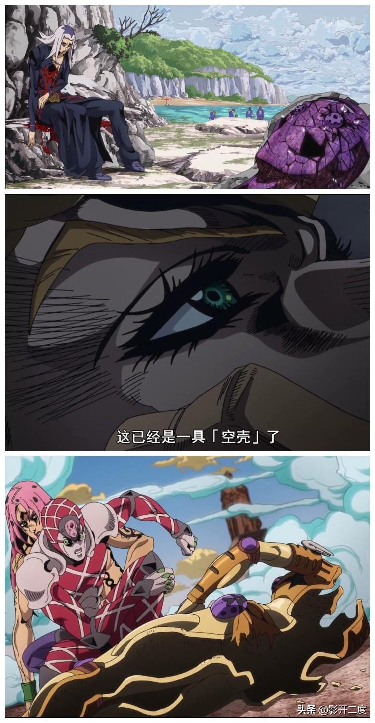 布加拉提这具行动的躯壳已经再明显不过,然后是纳兰迦的死,也通过躯壳进行展现。就连乔鲁诺的进化,也是如此。