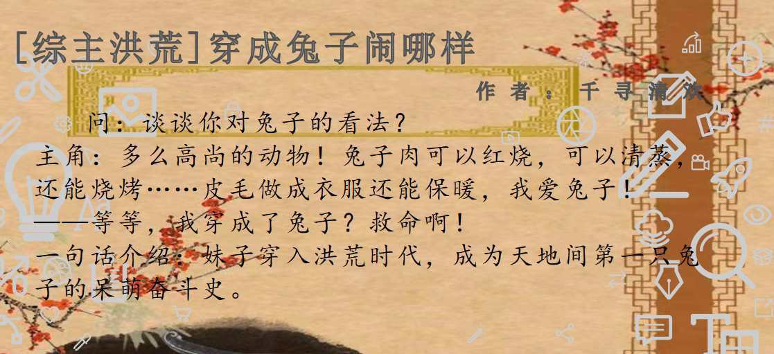 一句话介绍:妹子穿入洪荒时代,成为天地间第一只兔子的呆萌奋斗史。