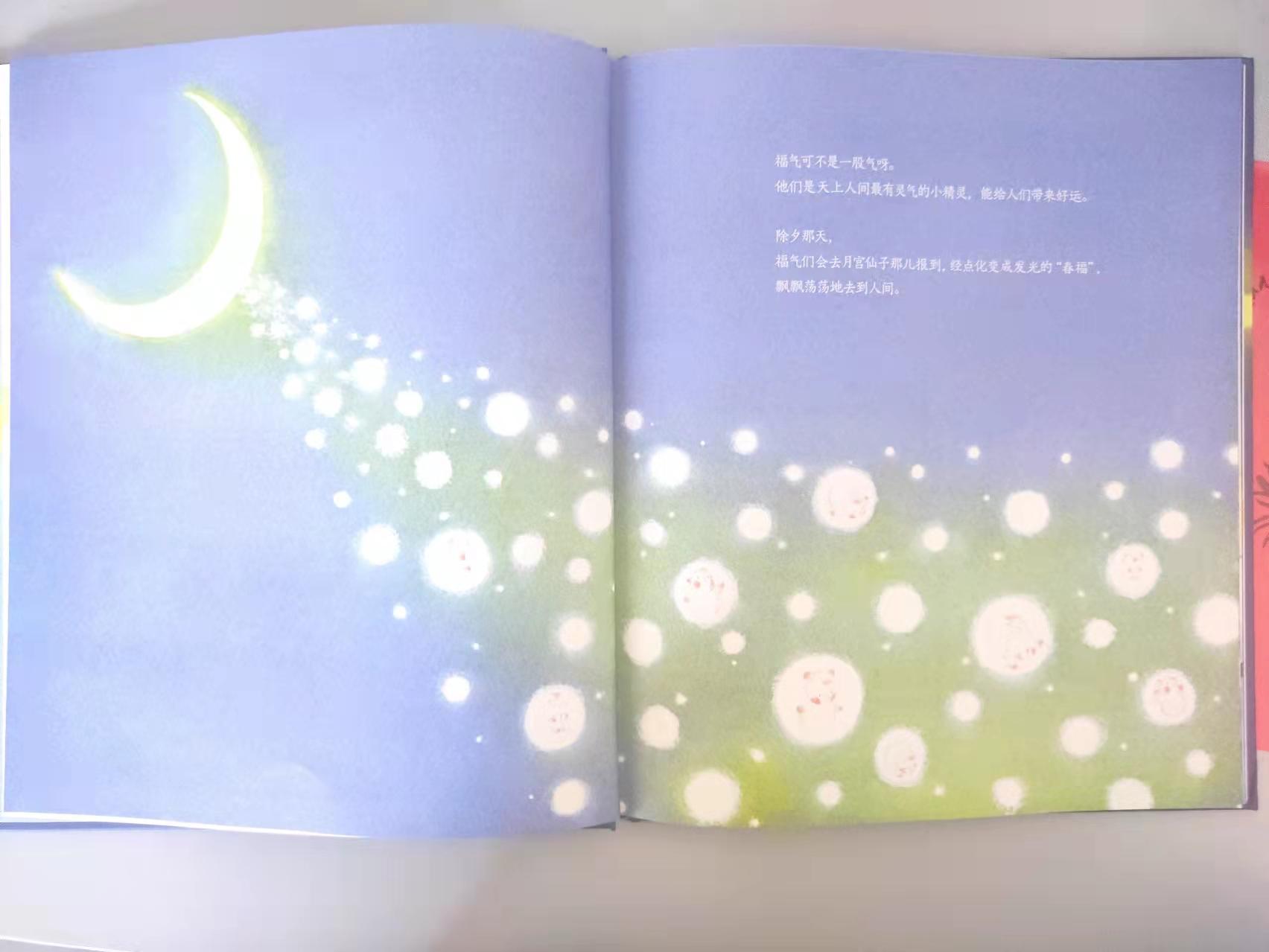 传说中,福气并不是一股气。它是由众多的小精灵组成,经过月宫仙子的点化,成为一个个发光的“春福”。这些春福飘荡到人间,给人们带来新年的新气象。
