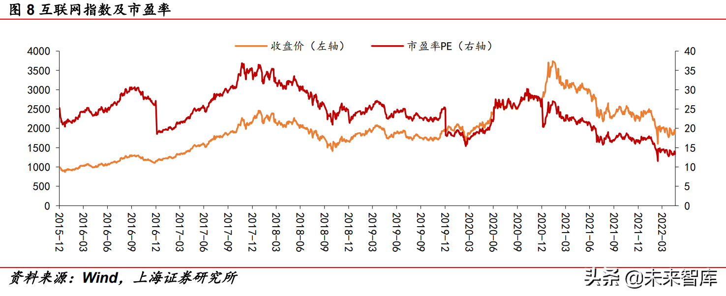 从指数上看,互联网指数自高位已经历大幅回调,主要系政策面 强监管(基本面)及流动性枯竭(资金面)。 1、政策面:从“强监管”到“支持平台经济”。2020 年 12 月 16- 18 日中央经济工作会议明确强调“强化反垄断和防止资本无序扩 张”,互联网板块进入强监管阶段;2021 年 8 月 30 日中央全面深 化改革委员会第二十一次会议强调“防止资本无序扩张已初现成 效”及 2021 年 12 月 8 日-10 日中央经济工作会议表态“反垄断和 防止资本无序扩张取得重要成效”,表明互联网行业已经达成监管 预期,开始释放政策面趋稳的信号;2022 年 3 月 16 日金融委会议 及 2022 年 4 月 29 日中共中央政治局会议则明确表态支持“互联 网发展”,政策面首次出现明确的支持性表述,互联网“政策底” 确定,并成为传媒监管其他子板块的风向标。