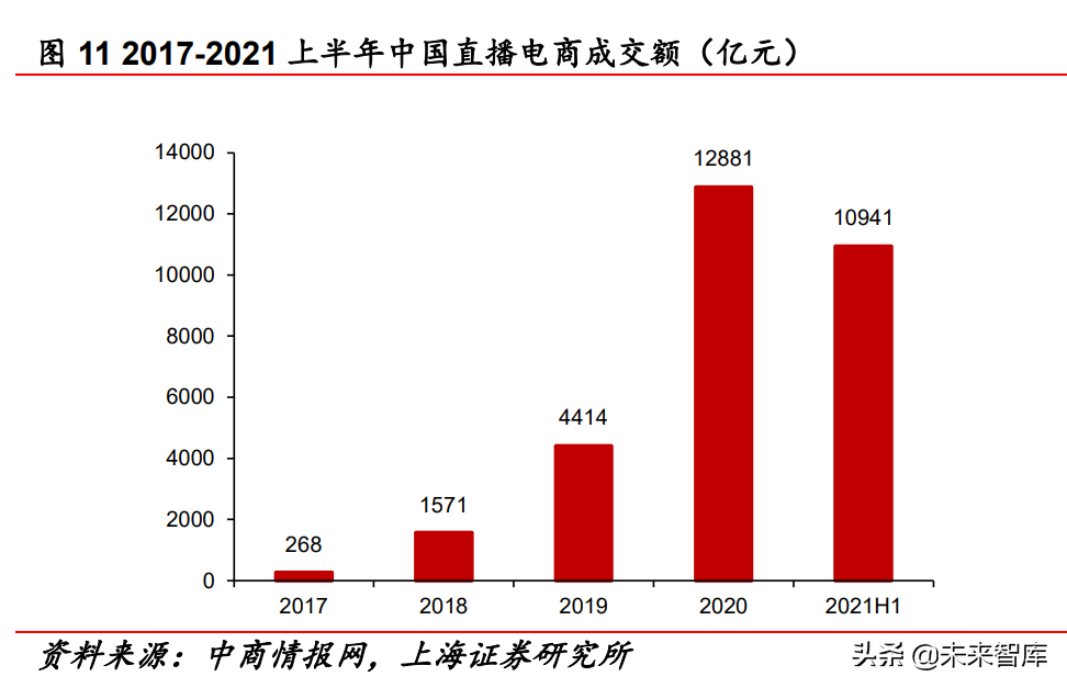 内容电商仍处于高速发展期,增量预计来自:(1)传统线下业务 进一步线上化(如逛街需求);(2)传统电商内容化。内容电商潜 在市场空间广阔,2021 年我国社会消费零售总 额达 44.08 万亿元,同增 12.5%,扣除价格因素,实际同增 10.7%。 其中全国网上零售额 13.09 万亿元,同增 14.1%,占比 29.7%; 2022年 1-2 月我国社会消费零售总额达 7.44万亿元,同增 6.7%, 扣除价格因素,实际同增 4.9%。其中全国网上零售额 1.96 万亿元, 同增 10.2%,占比 26.34%。截至 2021 年 6 月,我国网络购物用 户规模达 8.12 亿,较 2020 年 12 月增长 2965 万,占网民整体的 80.3%。直播电商保持高速增长,2021 年 H1,我国直播电商成交 额达 1.09 万亿,已达到 2020 年全年的 84.9%;2020 年全年直播 电商成交额达 1.29 万亿,同增高达 191.8%。