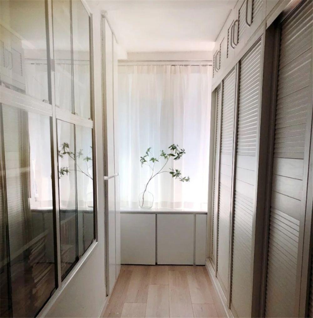 但改造过后,这位姑娘只是将原本两侧的柜子翻修加固,并在窗下增加了一组新的矮柜,就打造出这样一个兼顾衣帽间和收纳功能的小小杂物间,清空地上的杂物后,看起来清爽了许多。