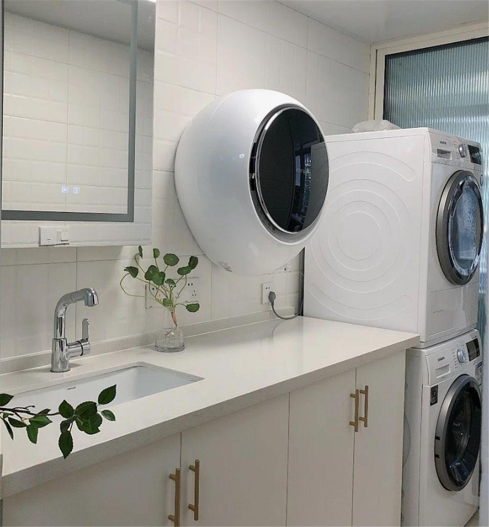 但在这次翻修改造过后,厨房直接变成了一个兼顾收纳功能的洗衣房,将这里重新还原出了过道原本的景象,即便安装上洗衣机、烘干机、壁挂洗衣机后,看起来也依旧是美观又简洁。