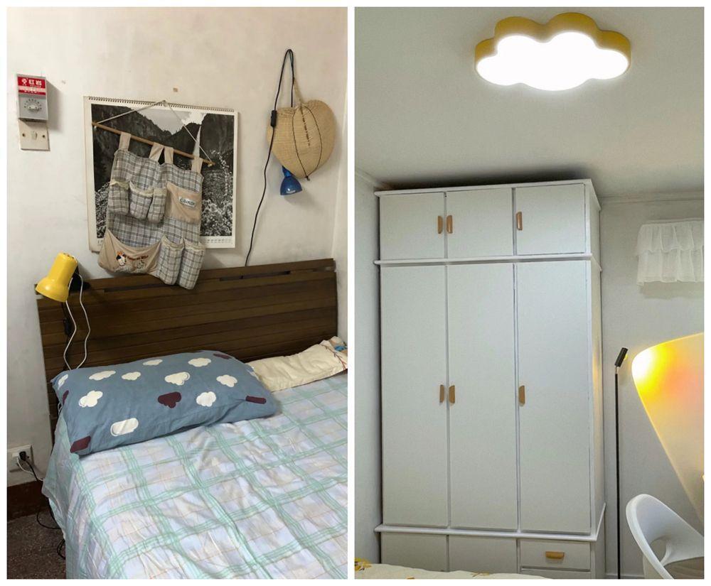 儿童房也是如此,将床铺更换,柜子贴膜,增加照明和更换灯具后,让小小的儿童房变得更加温馨舒适。