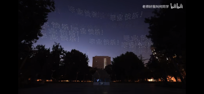 比如今年7月他的毕业视频《我毕业了》,做了一个放大版的3D Lidar扫描仪,让扫描仪可以识别夜空中的星星。一夜又一夜地坐在钓鱼椅上,拍星轨直到日出。他把收集到的星星,在夜空里排成了无数句“毕业快乐”。