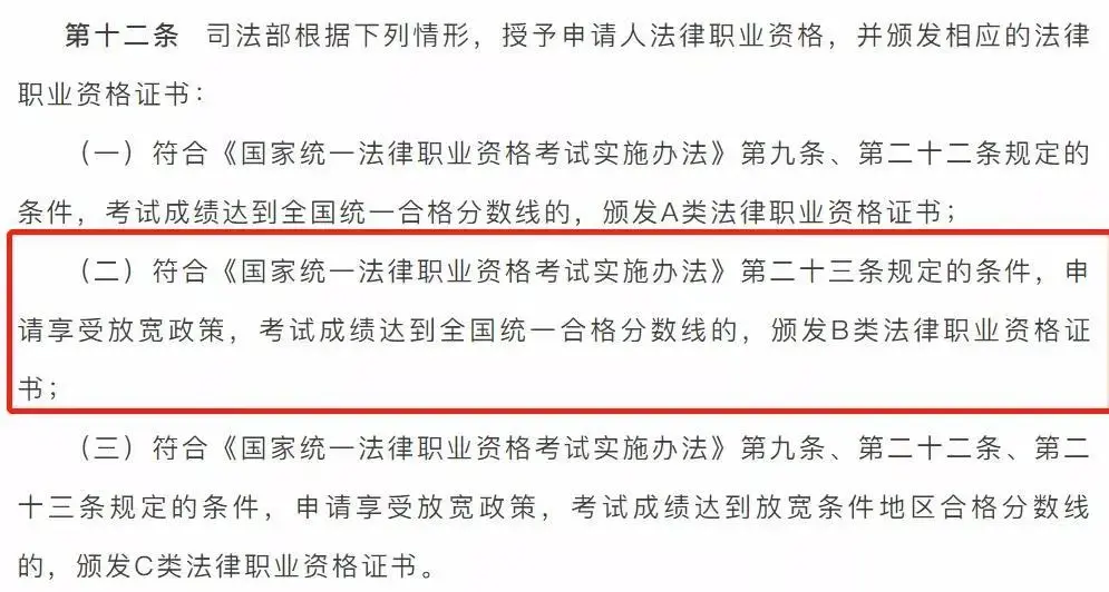 放宽地区报名条件,对法考报名学历做了“放宽调整”。这个也就是20年1月1日刚刚回归的B证,只要符合放宽地区学历就可以报考。