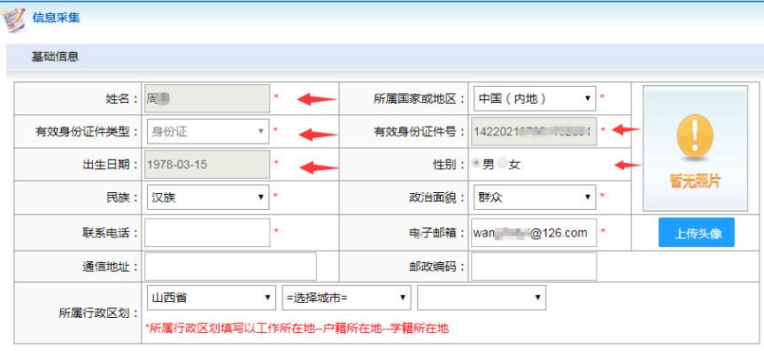 填写个人信息并上传证件照片