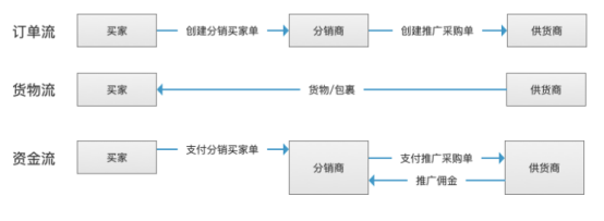这两者之间还是有差别的。任何一个下支分销商销售商品,都可以获得对应比例的提成。这种方式是在三级之间进行运作。而下支分销商销售出商品,直属的上一级分销商可以得到推广提成,这是在两极之间进行运作。