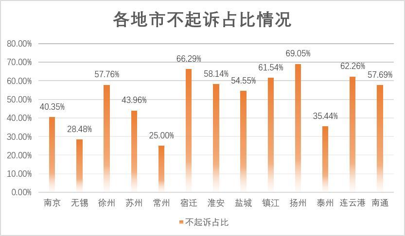 从案件的比例情况可以看到,江苏省虚开增值税专用发票罪案件的不起诉比例达到48%,那么,各地级市的不起诉情况又会是怎样呢?