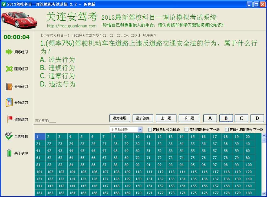 科目一考试我拿到了99分,顺利通过。有一分丢掉还不是我不会做,只是手比眼快了些按错键盘才丢的。这一科的技巧就两个字,“做题”。我下载了驾考宝典,用了一个星期的时间把上面的所有题做了2遍,自己又拿上面的考试题测试了八九遍,每次均在98分以上。如果低于这个分数还得练,因为真正的考试题是不固定的,只有多刷题才能做到万无一失,千万不要偷懒。第一次顺利通过考试是给咱自己一份自信,开个好头。