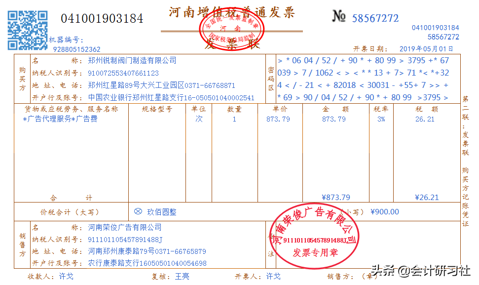 郑州锐制阀门制造有限公司财务部2019年12月31日(加盖财务章)