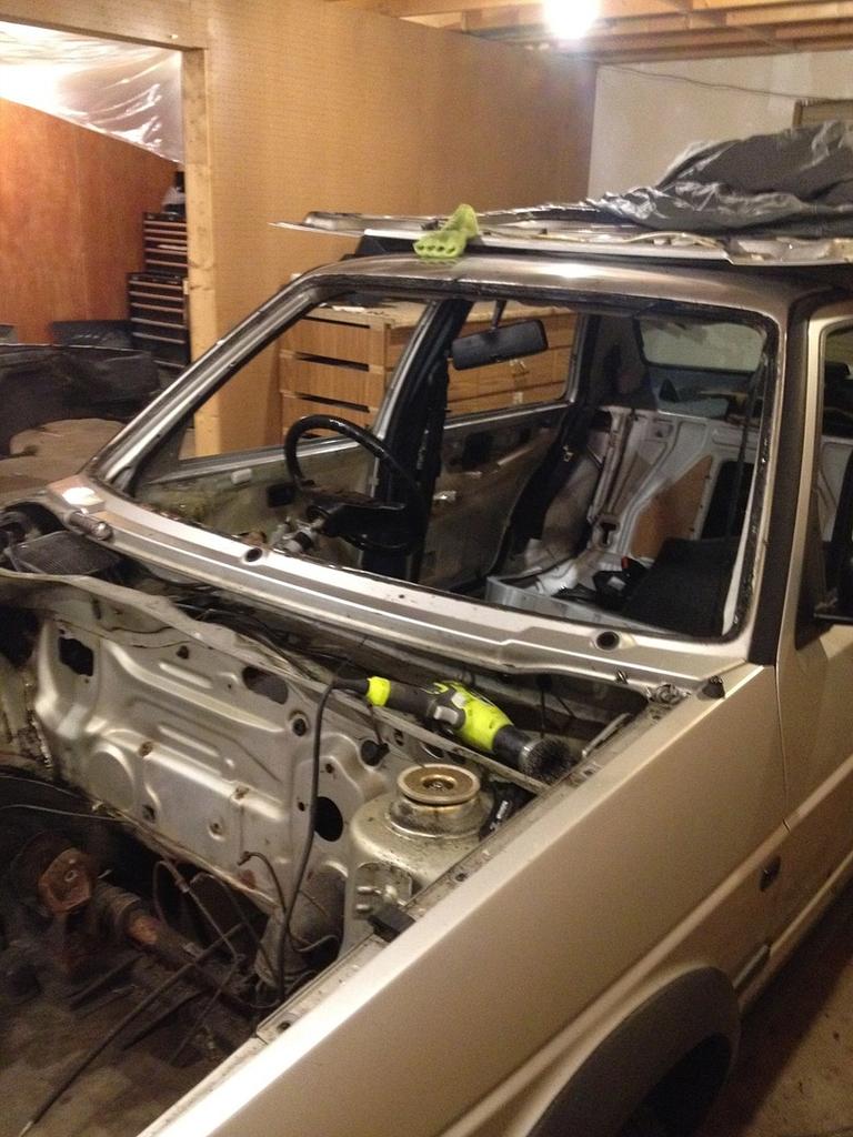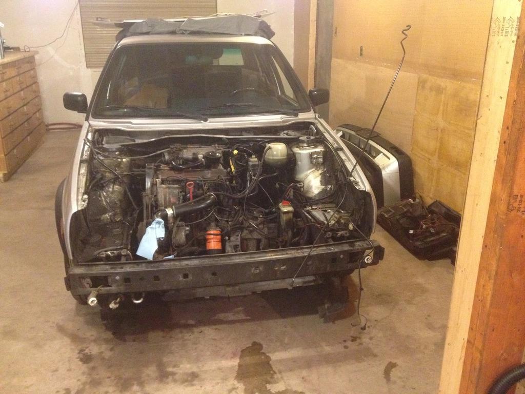 我准备翻新整台车,因此首先要做的便是将所有能拆下来的东西全部卸载。最先完成拆卸的是发动机部分,动力总成最后是要更换新的,在拆卸时我并没有想好更换哪种型号的机型。