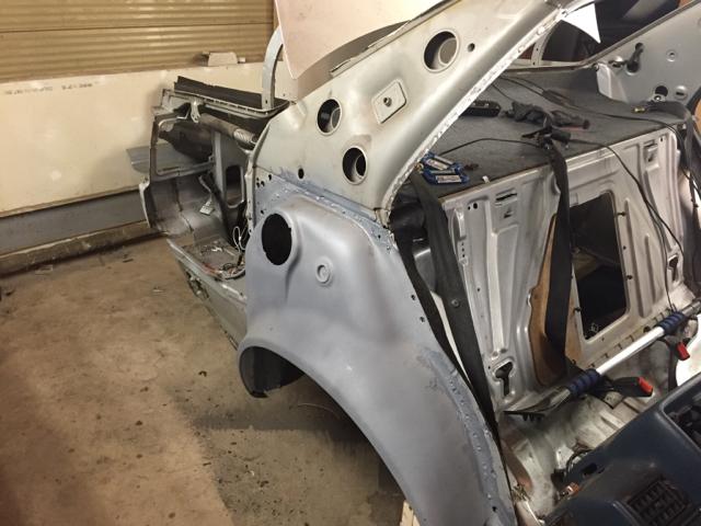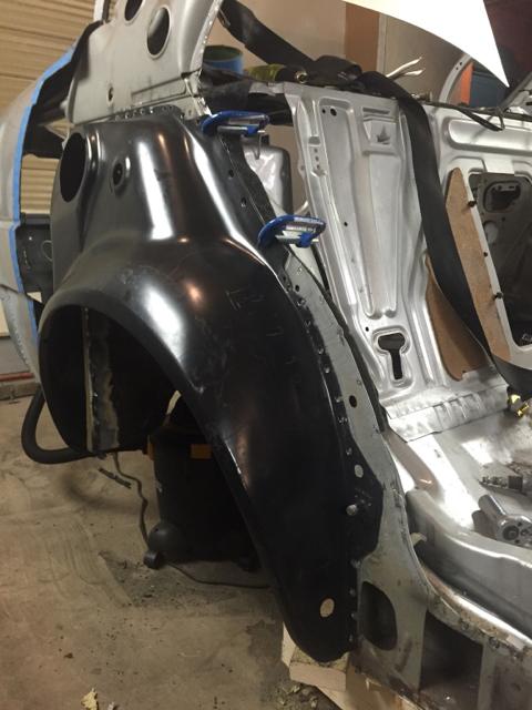 车门槛板和轮舱面板焊接好之后,只等右侧最后一个零件——后翼子板了。过了没多久,心心念念的零件便已到货,原有的零件便可以放弃了。大众的焊接技术为日后的车身修复留下了不少捷径,大部分车身件都能通过焊点拆除来换修,但这也并非全是好处。