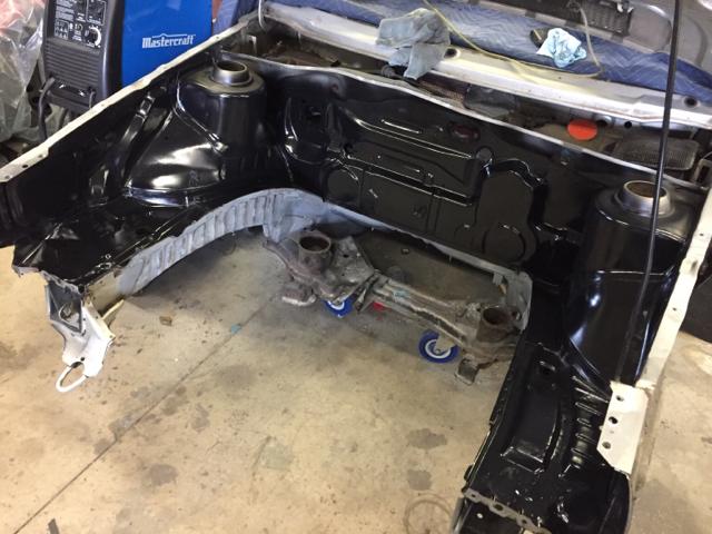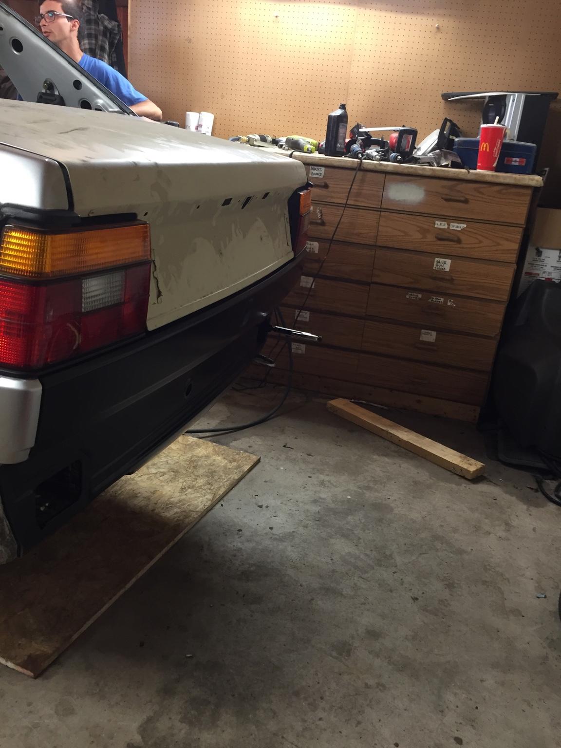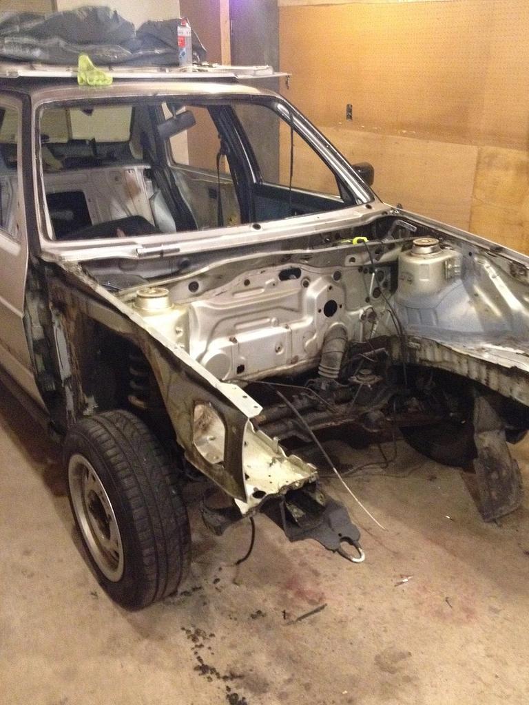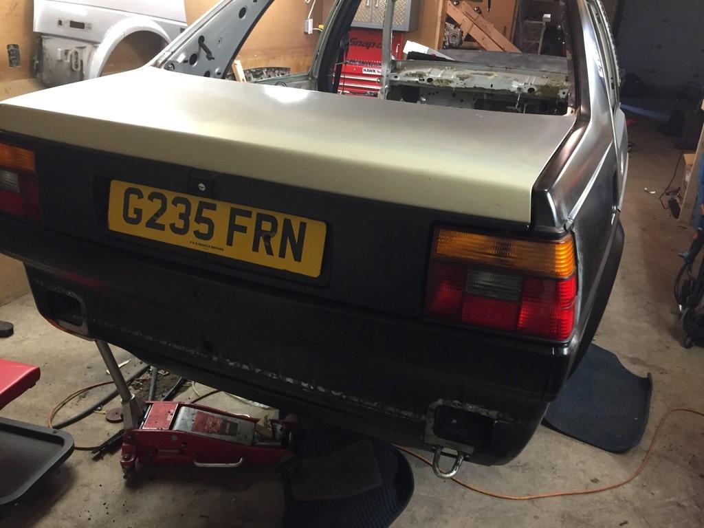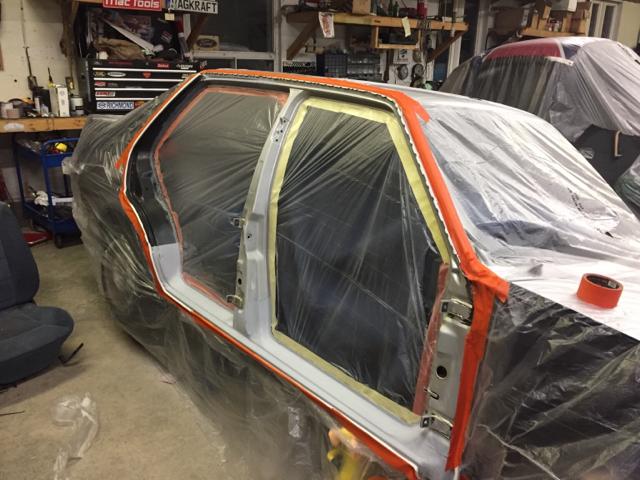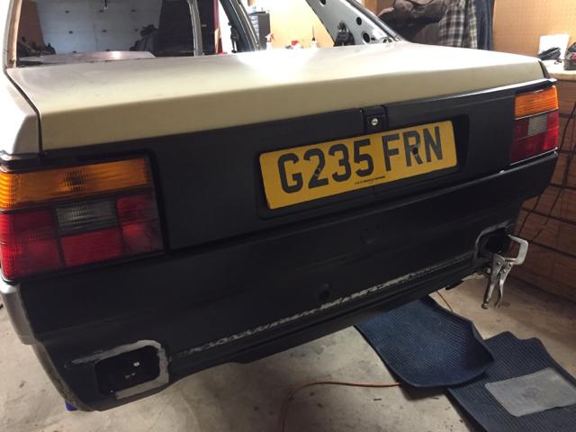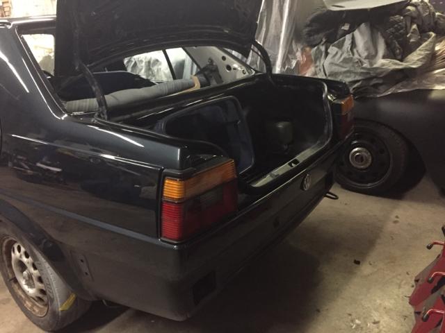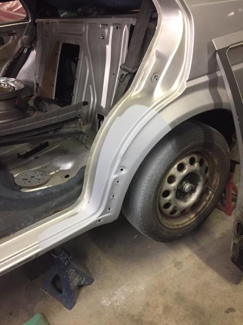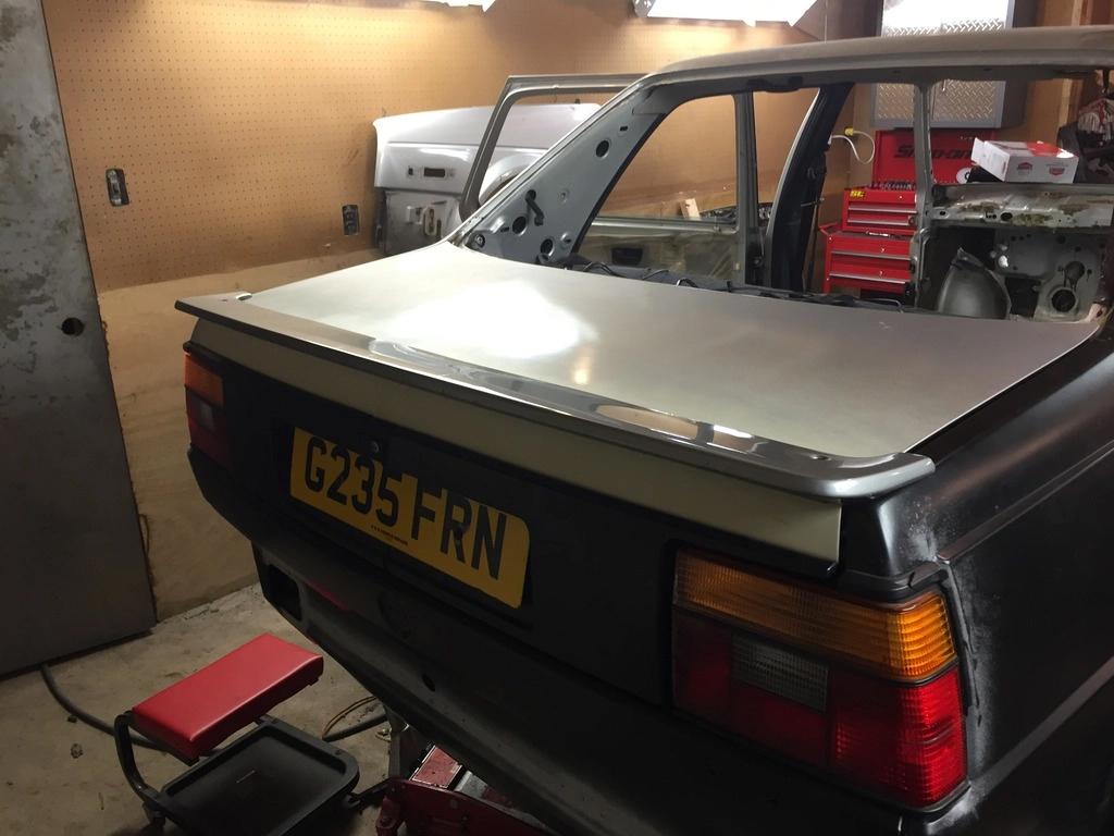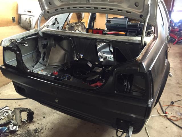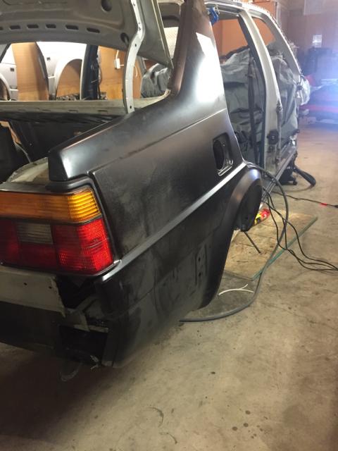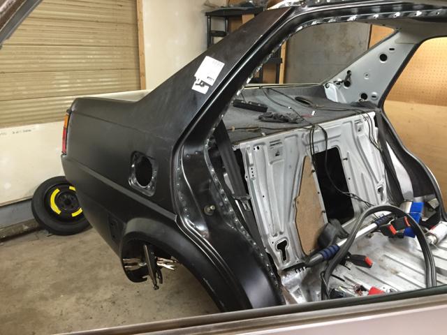 在焊接工作全部完成之后,我在二手零件网站上找到了一条GLI鸭尾,于是趁着车身还未喷漆,便进行了安装。