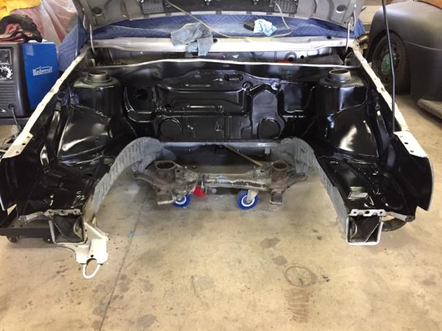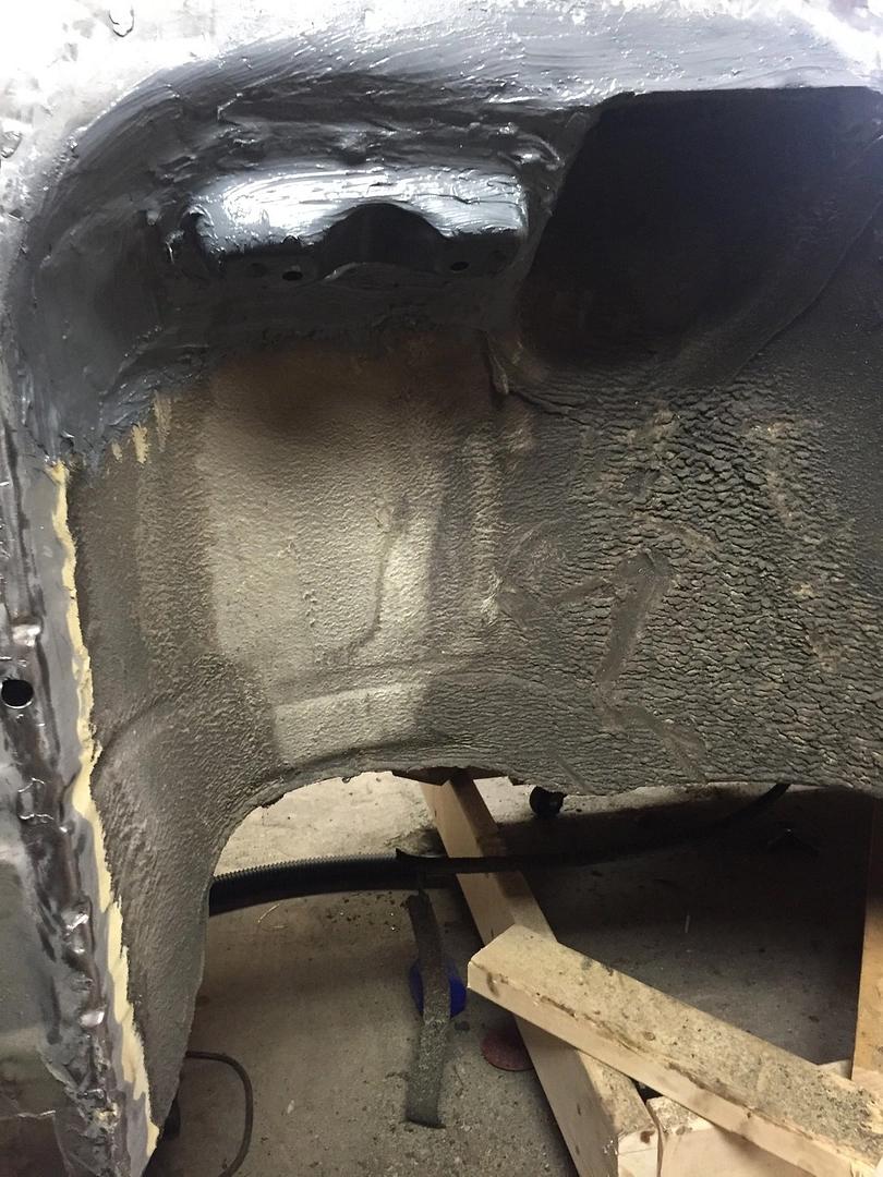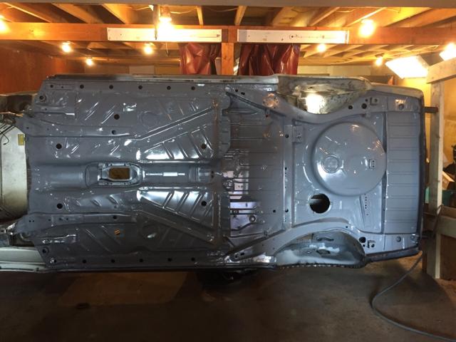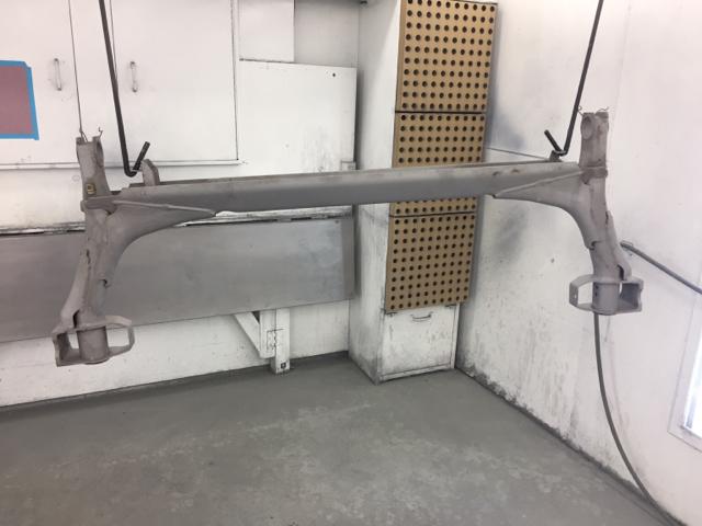 完成了清理和简单的锈蚀处理,我给整个底盘喷上了环氧底漆。