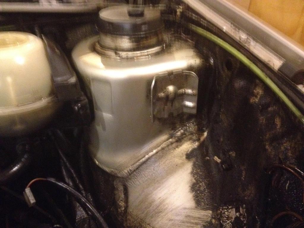 底盘的清理其实非常费时费力,整个底部全是密封胶,极其牢固。清理了许久之后,才勉强清理出后备箱底部位置。