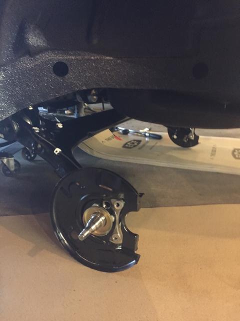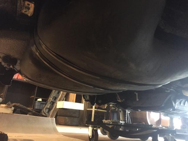 将油箱翻新之后重新固定在底盘底部,暂时先用了皮圈进行固定,在做完这项工作之后,便可以将组装好的扭力梁悬挂装回车下。