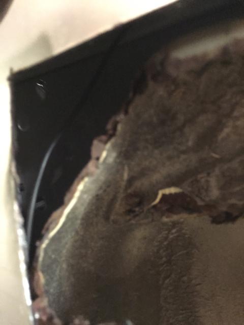 全部拆空之后,车身上的问题便能清晰的展现出来了。两侧的后轮眉锈蚀严重,因为外层有黑色塑料包裹,平常难以看出来,而塑料和车身之间的间隙能够存少量水,这也是导致后轮眉锈蚀的主要原因。同样,两侧下方的车门槛板同样也有锈蚀情况。