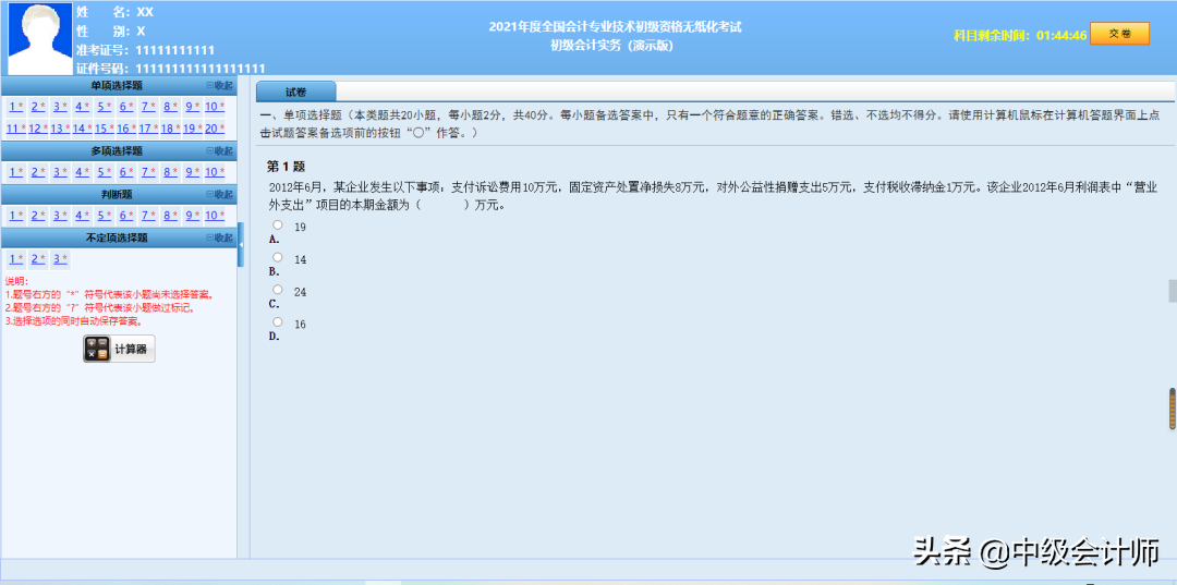 初级考试采用机考的形式,所以,考生千万不要只顾着埋头背书、做题,一定要提前熟悉机考。