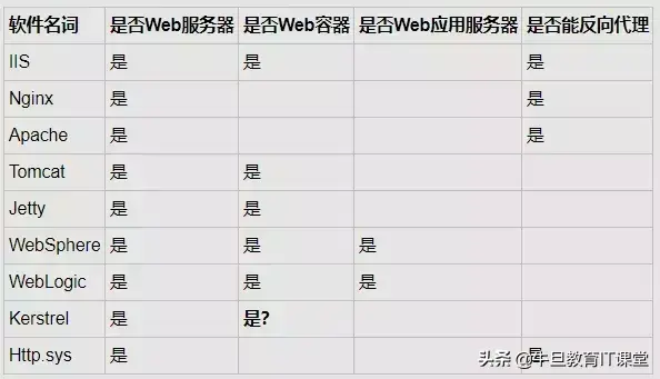 Web 服务器是提供 WWW 服务的程序。Web 容器是提供给开发者的框架。Web 应用程序服务器内容丰富得多,既可由各厂商通常遵循一定的工业标准并自定义扩展功能而成,也可以利用开源组件轻量级拼装打造。反向代理服务器在企业级应用中表现突出,具有解决集中式安全,负载均衡等等优点。如今这四个概念的边界越来模糊,看看这个表就知道了: