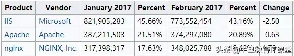 包括 Apache、IIS 、Nginx 市场占有率如下图::