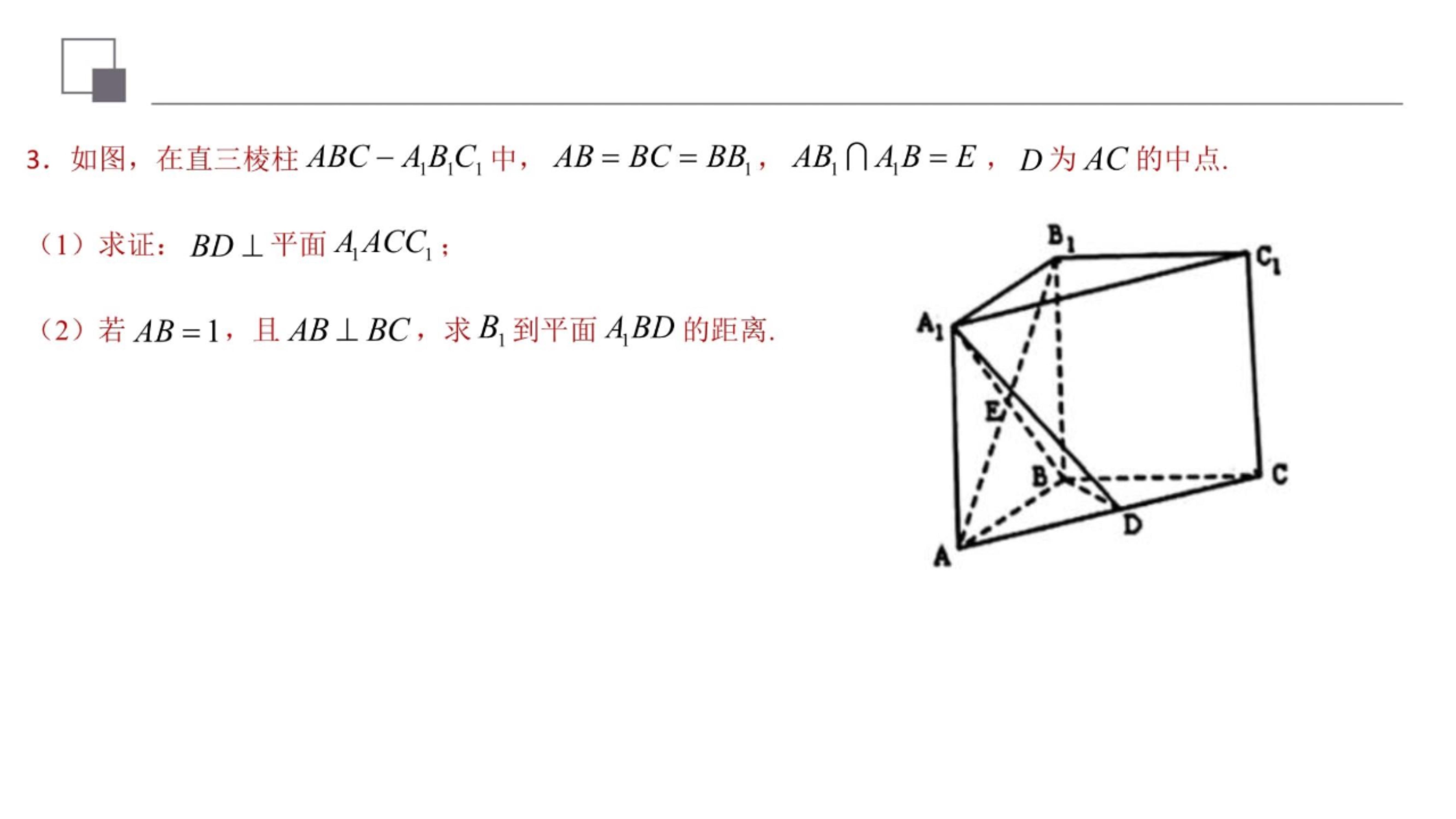 本题考查了线面垂直的判定定理应用,利用法向量法求点到平面距离。