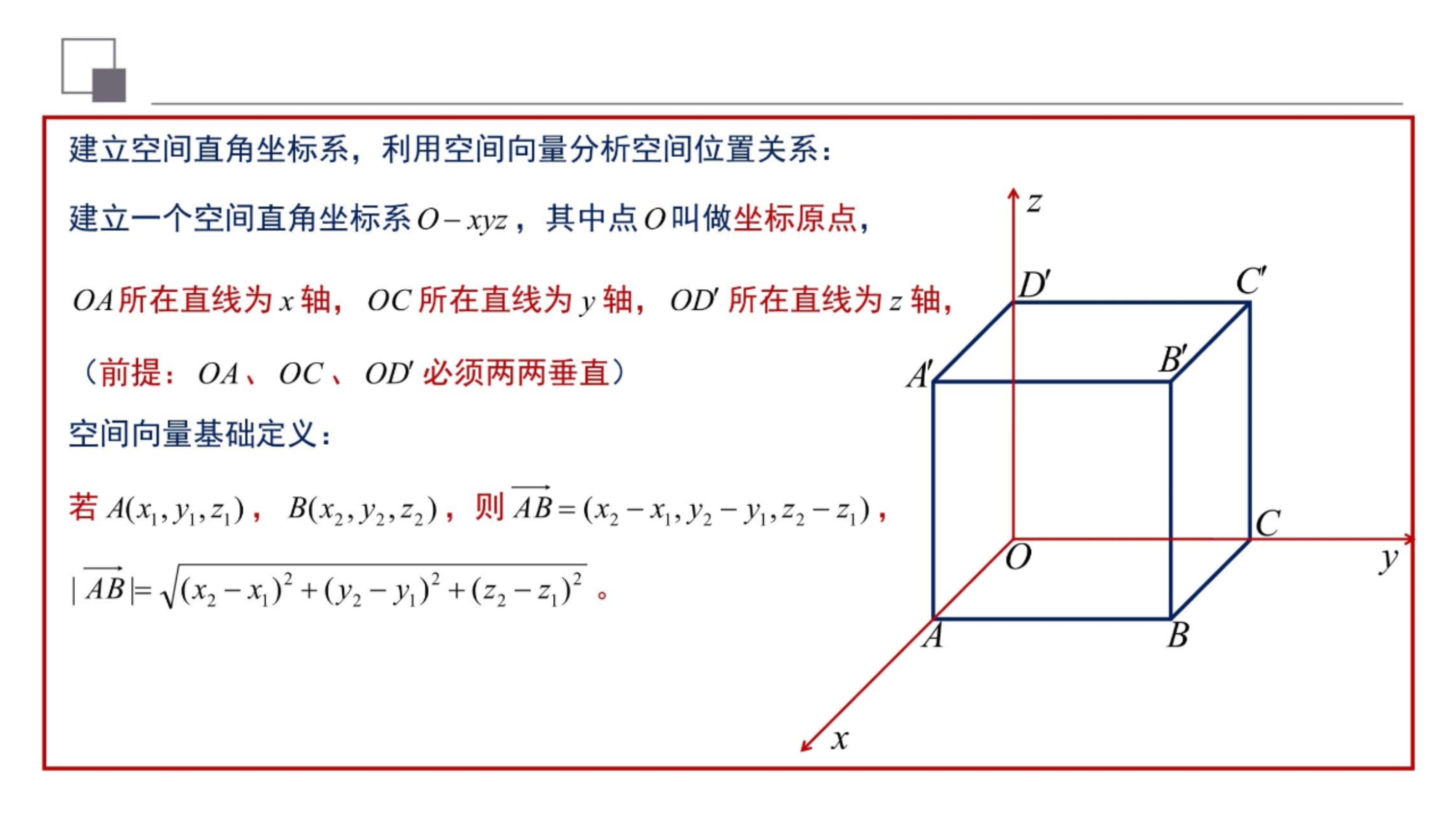 1、熟悉空间向量的基础定义,必须保证两两垂直的定义;