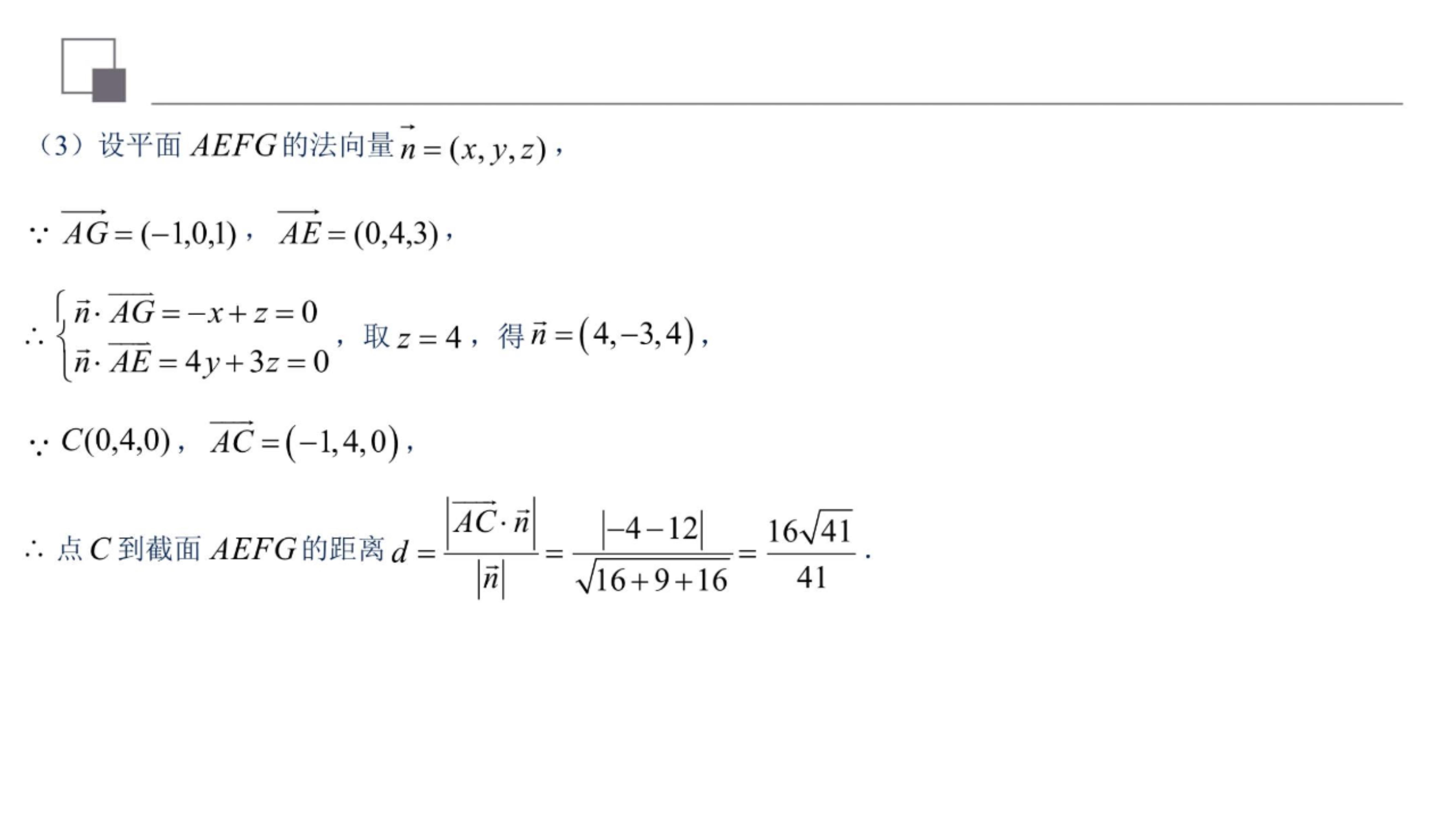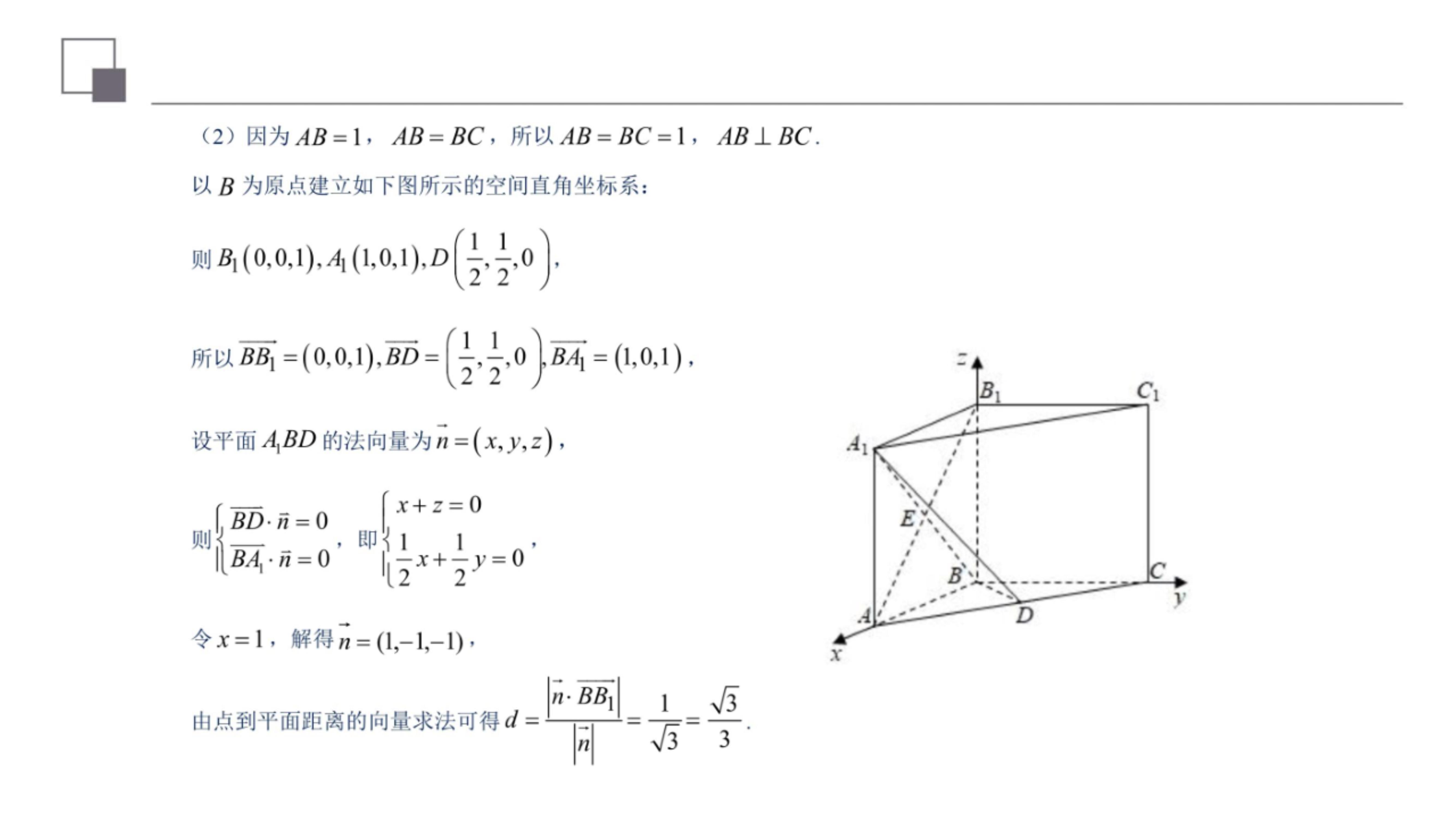 同学们对于向量的概念,点到面的距离的问题,还有空间的一些位置,关系一定要非常熟悉。