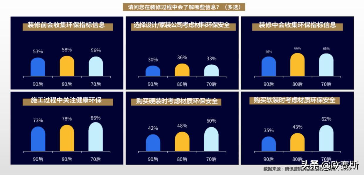 2、90、80、70后环保安全需求显著,体现在家装全过程。
