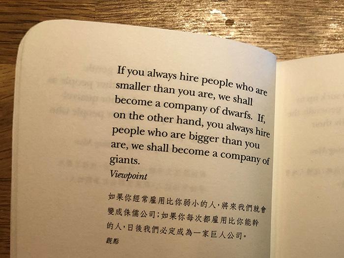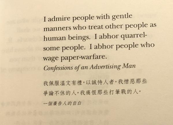 进奥美的人都会看一本奥格威的语录,我觉得奥格威的想法、思想都特别好,但他的公司比他本人更好。这一点在我们自己开了公司以后,深有体会。奥美这家公司总会让人觉得很温暖,就算你离职了,但只要你有事情打电话给奥美那边的同事,他们仍然会很热情地帮你。