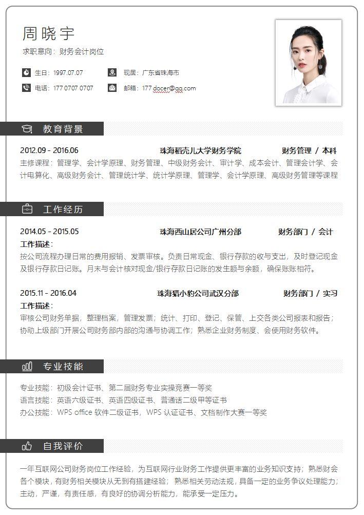 版权声明:我们致力于保护作者版权,注重分享,被刊用文章【财务会计简历(2022年最新整理250套个人简历模板)】因无法核实真实出处,未能及时与作者取得联系,或有版权异议的,请联系管理员,我们会立即处理! 部分文章是来自自研大数据AI进行生成,内容摘自(百度百科,百度知道,头条百科,中国民法典,刑法,牛津词典,新华词典,汉语词典,国家院校,科普平台)等数据,内容仅供学习参考,不准确地方联系删除处理!;