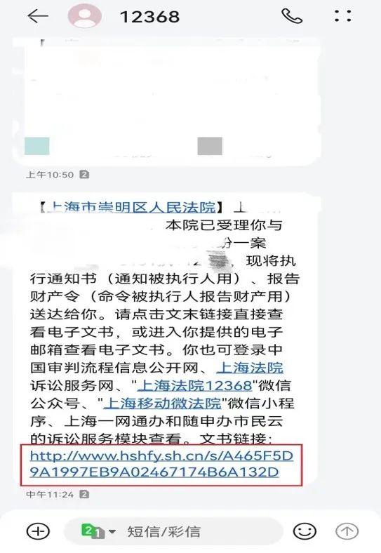 以执行款为例,如果有需要处理的执行事项,上海法院12368诉讼服务平台会发来短信。您可以根据短信中列举的方式登录相应平台进行查看,也可直接点开短信内容里的链接,签名登录后点击“查看文书”,打开执行通知书,找到法院代管款账号,将钱款转入该账号。