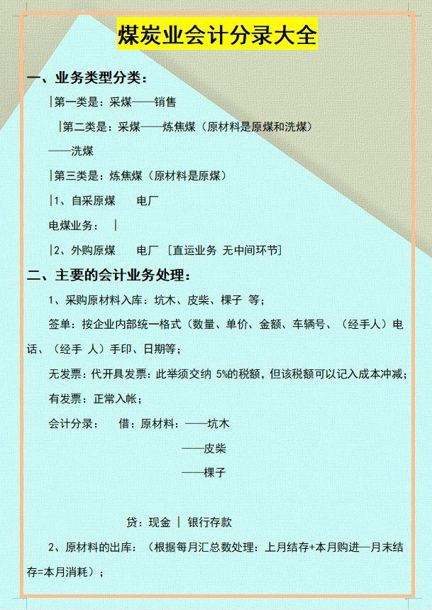以上就是小编为大家整理的煤炭行业会计分录大全,希望能帮到大家。