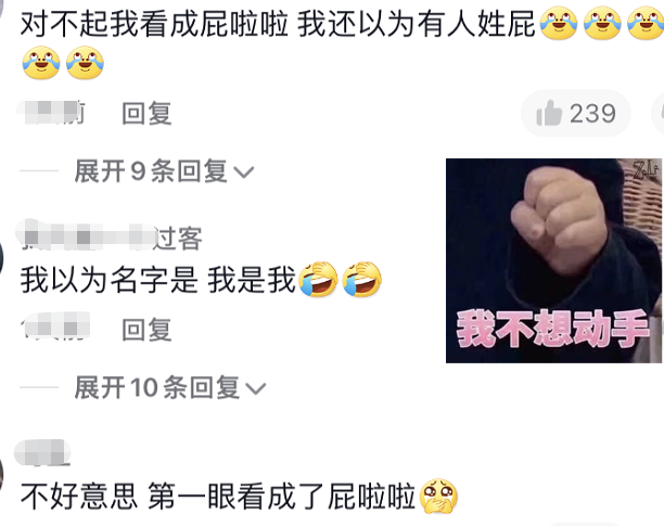 还有的网友表示,自己刚看见名字的时候没看清,还以为叫“屁啦啦”,难道还有这样的姓氏?认真看了之后才发现叫屈啦啦。