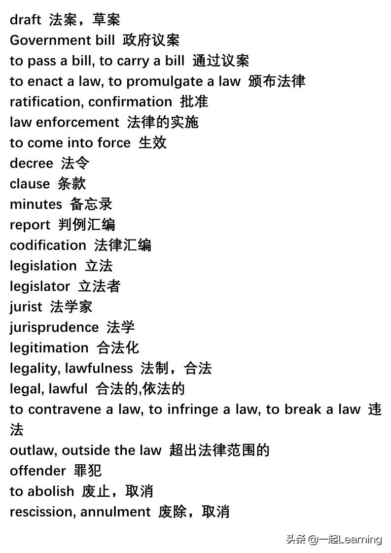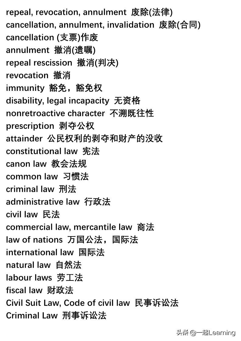 版权声明:我们致力于保护作者版权,注重分享,被刊用文章【法律英语学习(与法律有关的英语表达)】因无法核实真实出处,未能及时与作者取得联系,或有版权异议的,请联系管理员,我们会立即处理! 部分文章是来自自研大数据AI进行生成,内容摘自(百度百科,百度知道,头条百科,中国民法典,刑法,牛津词典,新华词典,汉语词典,国家院校,科普平台)等数据,内容仅供学习参考,不准确地方联系删除处理!;