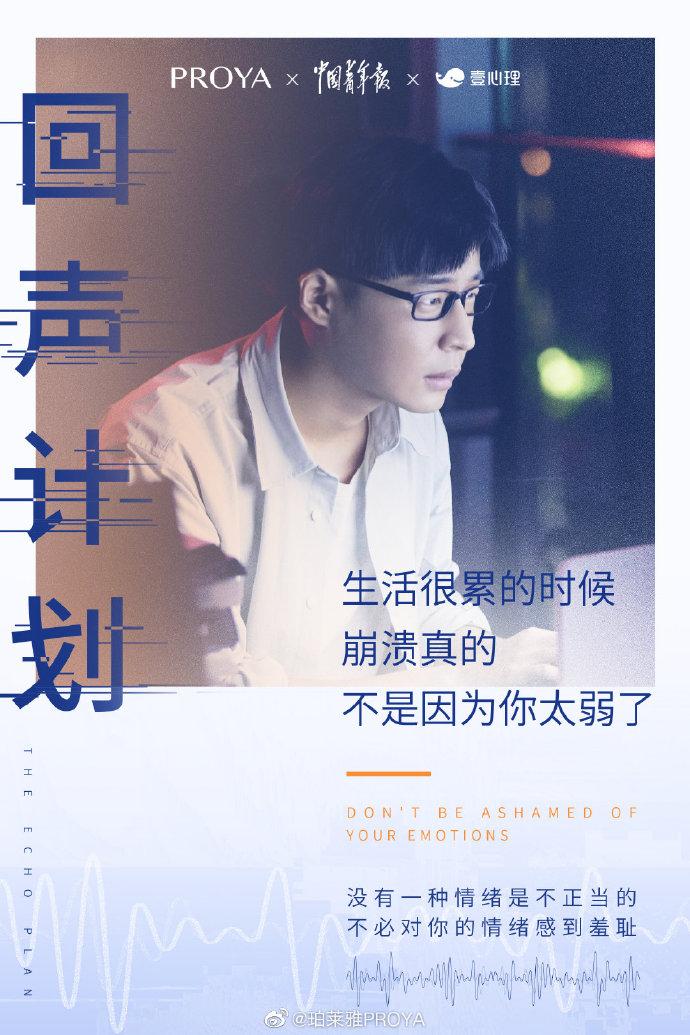 适逢「世界精神卫生日」,珀莱雅联合中国青年报、壹心理,发起「青年心理健康公益行动——回声计划」,鼓励情绪诉说,期待善意温柔的「回声」出现。珀莱雅推出的短片,以他人冷漠的质疑为始,用三个片段讲述工作压力、失恋的悲伤以及青春期迷茫,引起观众的情感共鸣。短片最后回答并消解人们的自我质疑:没有一种情绪是不正当的,不必为自己的情绪感到羞耻。