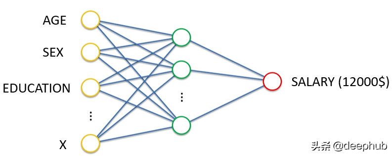 如果我们将神经网络的目标定义为学习在给定一些输入特征的情况下输出连续值。 在上面的例子中,给定年龄、性别、教育程度和其他特征,那么神经网络就可以进行回归的运算。
