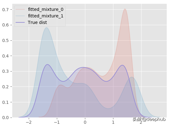 model.plot_distribution_fit(n_samples_batch = 1)几乎一模一样!分解混合模型,看看什么情况: