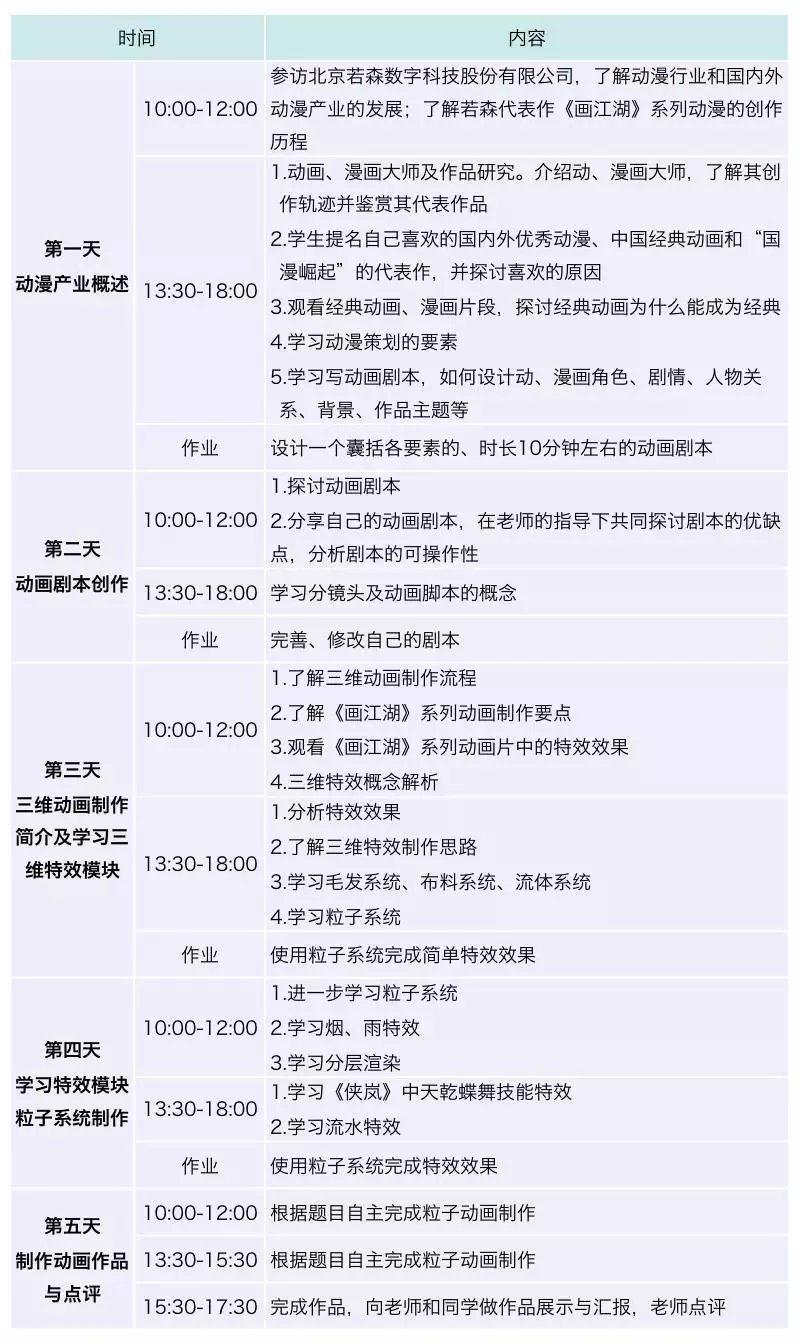 • 进入若森数字(《画江湖》《风语咒》的制作公司),了解动漫产业和动画制作流程,学习如何策划一部动画,学习三维特效制作方法,并在老师指导下,完成一部动画短片的剧本,独立完成15秒粒子动画制作。