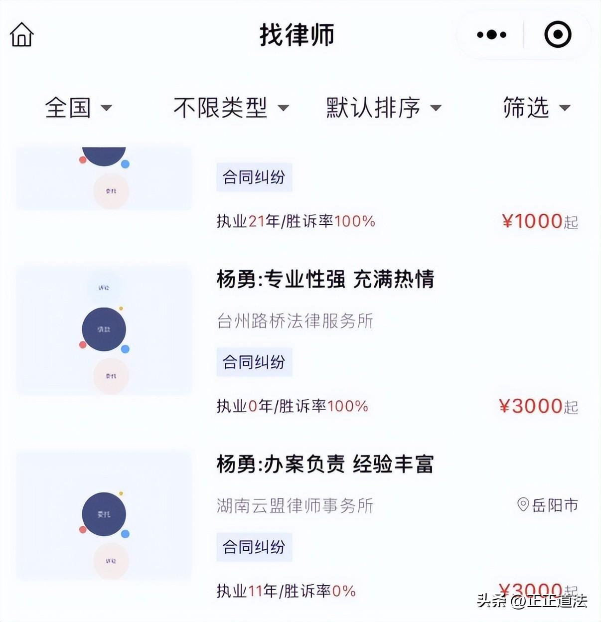 除此之外,还标记了律师的办案领域、办案量、胜诉率、个人评价等。