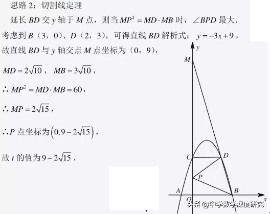 像这种问题变化方式其实并不多,理清楚问题的构成条件以及每个条件的应用,便能在变化中准确找到切入点,根据条件分析我能做什么不仅是一种嗅觉,更是靠基础的积累.通过两道例题,体会米勒定理,并发现这里最大张角问题的本质,过两点圆切点处取得最大值!